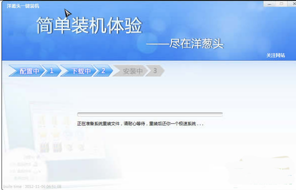 4、正在安装洋葱头装机软件,耐心等待即可。