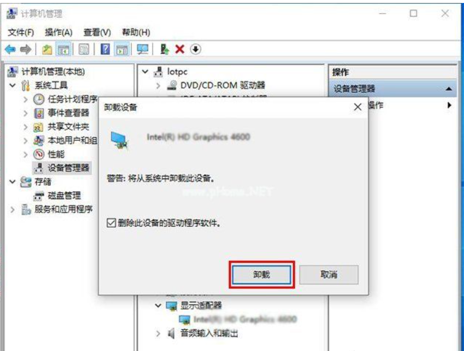 设置管理器中卸载电脑显卡驱动再重装: