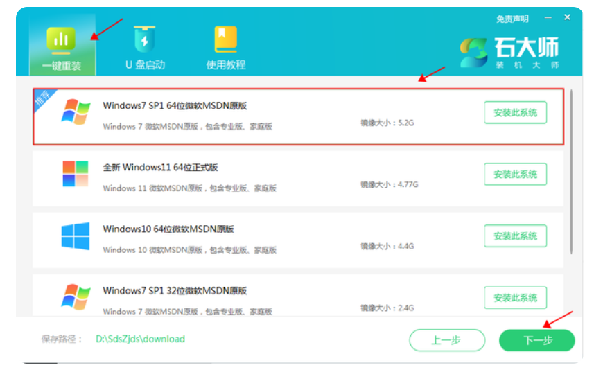 1、下载并安装石大师,打开进入界面,选择想要重装的系统,点击安装此系统。