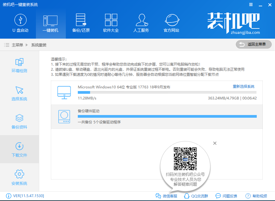 8、 系统下载完成后,装机吧将会校验系统文件MD5值,完成后会自动重启进行系统重装。