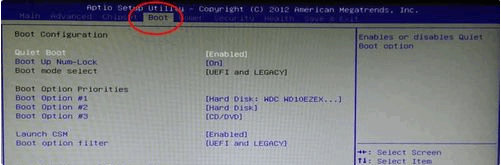 接着我们用方向键向右,选到BOOT