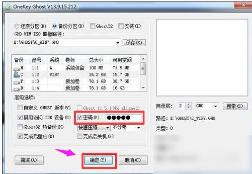 为了保证自己备份后的文件的安全性,可以选中“密码”选项,便可以设置密码,保证系统或者分区文件的安全性。