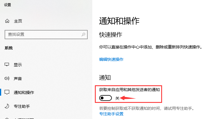 3.将“获取来自应用和其他发送者的通知”下方的按钮设置为“关”即可。