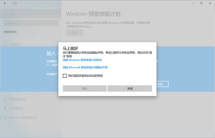 1、进入Windows 10“设置” 中的 “更新和安全”,点击 “Windows 预览体验计划”,如下图所示;