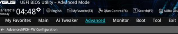 1、首先将电脑开机,然后进入BIOS,依次点击:Advanced—》PCH-FW Configuration。