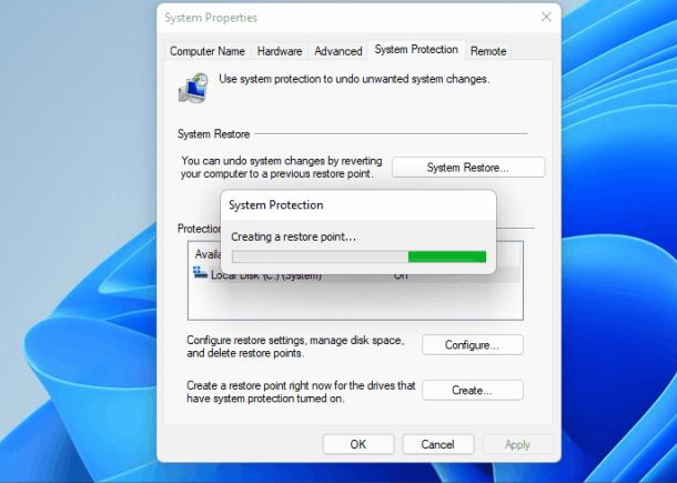 5.这时我们只需等待系统开始创建还原点的操作,等待创建完成。
