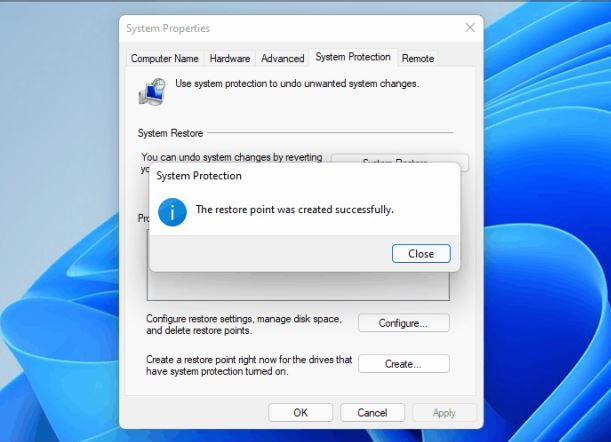 6.这个创建的过程完成以后,稍等一会儿我们就会收到一条确认创建还原点的通知,那么就说明该还原点创建完成。