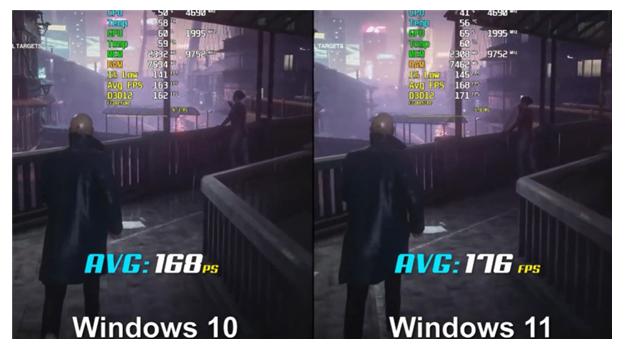 1、在各种3D大作的测试中,win11的表现也比win10稍好一些,平均帧速要比win10高。