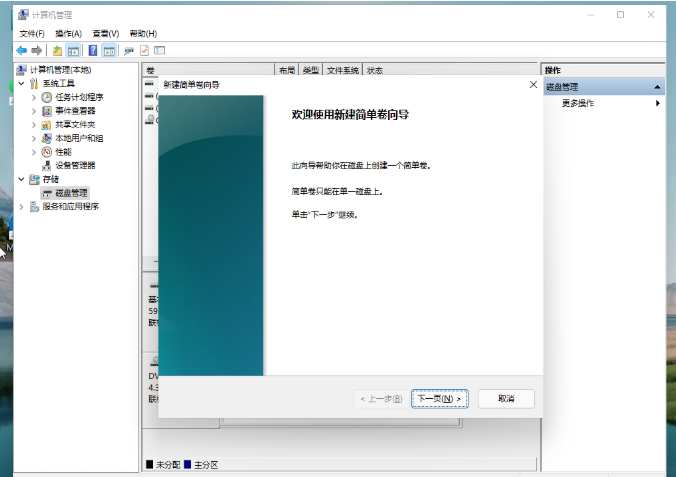 7、此时会出现新建简单卷向导,我们直接点击下一步继续操作即可。