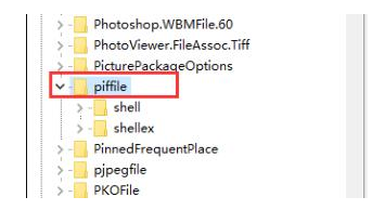 5、接着回到注册表,找到“HKEY_CLASSES_ROOT”下的“piffile”文件夹。