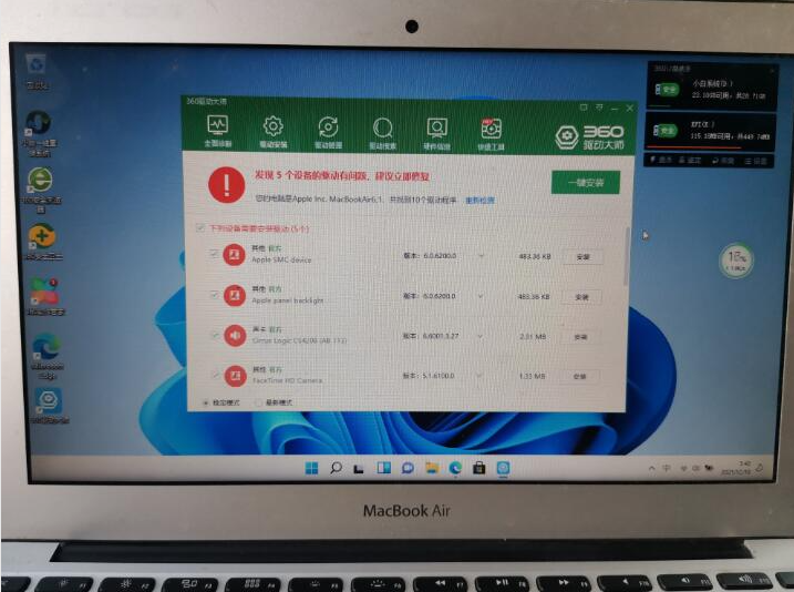 1、正常进入到Win11系统后可能电脑可能无法联网,这个时候插上U盘,把下载备用的驱动精灵网卡版和驱动人生网卡版以及苹果 Windows 驱动包拷贝到电脑中。安装驱动精灵网卡版更新驱动,然后正常联网并更新相关驱动。