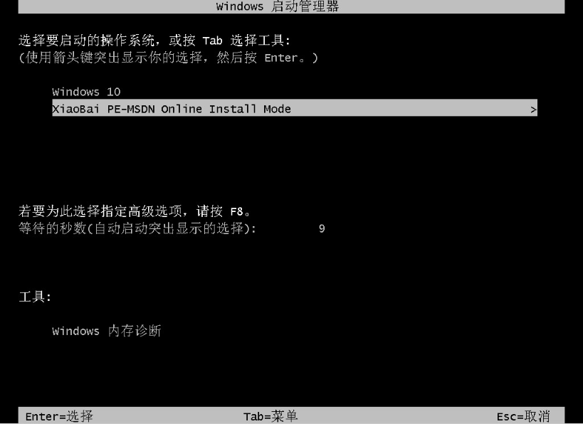 4、当进入到开机选项界面,选择第二项xiaobai-pe系统进入。