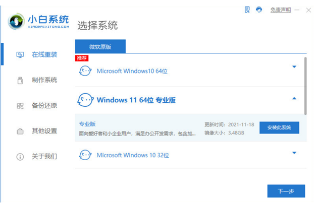 1、上网搜索并下载小白一键重装系统,双击打开,选择在线重装系统。